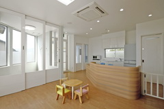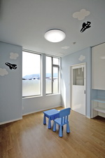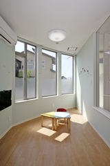 床暖房付の明るい保育室 奥は隔離室